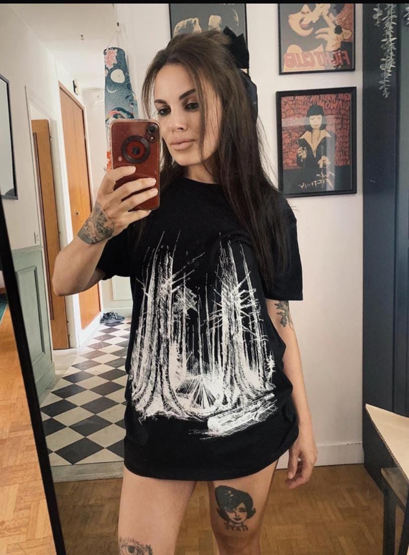 t shirt forest lover camper screen print black white minimaki
